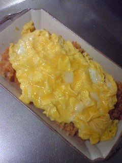 7.丼にご飯を盛り、その上に5の卵、そして6のあんをかける。完成。